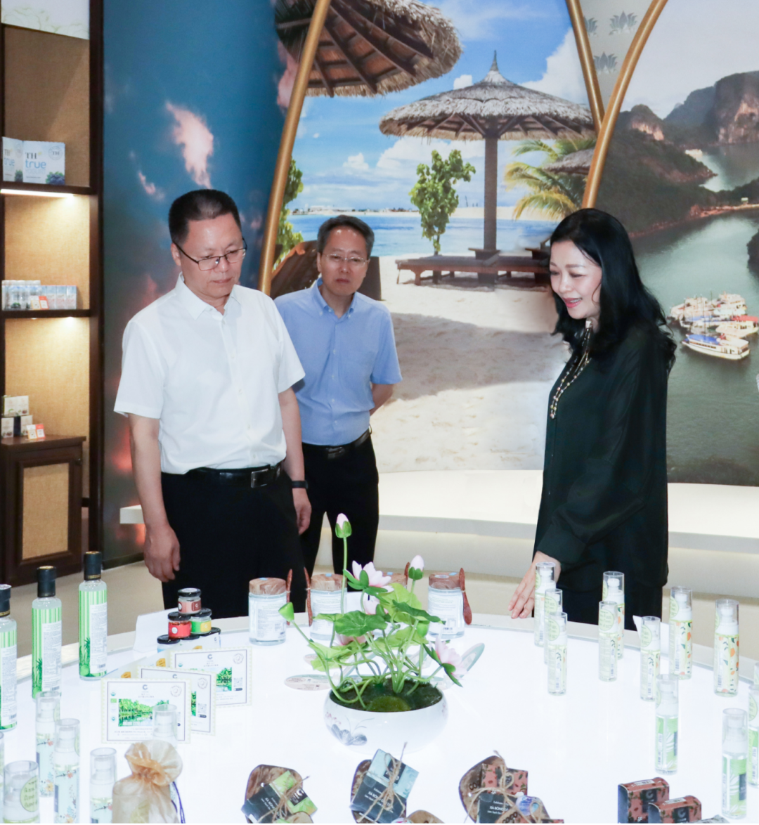 隨后調(diào)研組走進(jìn)匯聚中心多個(gè)主題展館,聽(tīng)取了項(xiàng)目的建設(shè)理念介紹,深入了解“以物引流”“以物促流”的創(chuàng)新做法,對(duì)于匯聚中心在對(duì)外交流合作上取得的成果情況,并積極推動(dòng)廣西與東盟乃至RCEP其他區(qū)域國(guó)家的經(jīng)貿(mào)合作表示充分肯定。