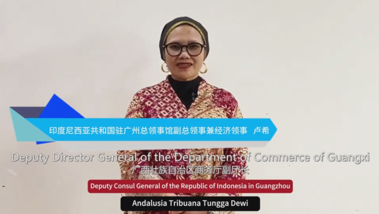 ▲盧希副總領(lǐng)事在視頻致辭中表示,包括廣西在內(nèi)的華南地區(qū)在促進(jìn)印尼與中國(guó)建立更緊密、更深層次關(guān)系方面發(fā)揮著關(guān)鍵作用。清真市場(chǎng)為印尼與廣西之間的合作,包括在東盟框架內(nèi)的合作提供了巨大的機(jī)會(huì)。今年是印尼和中國(guó)建交75周年,中印尼兩國(guó)政府致力于進(jìn)一步加強(qiáng)伙伴關(guān)系。為此,她希望這次活動(dòng)能夠取得更加具體的成果,造福兩國(guó)人民。