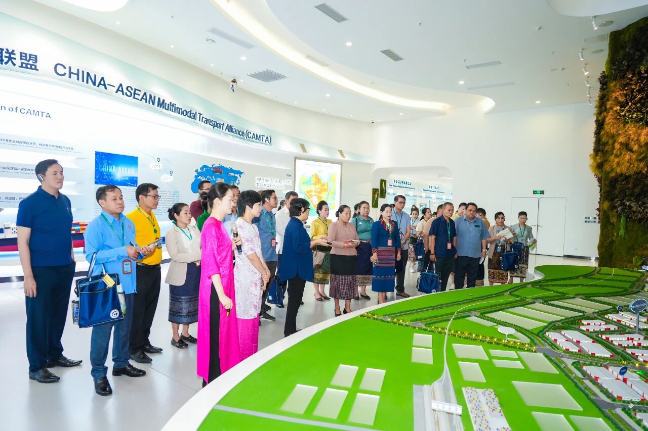 考察團(tuán)來到中新物流園展廳,詳細(xì)聽取了園區(qū)建設(shè)與運營情況的介紹,并重點了解項目在提升物流便利化水平方面所發(fā)揮的積極作用。考察團(tuán)表示,中新物流園不僅具備多式聯(lián)運的物流服務(wù)能力,還配套有大型物流倉儲和冷鏈等設(shè)施,在推動國際貨物貿(mào)易優(yōu)化升級方面優(yōu)勢顯著,未來希望能與園區(qū)在物流、商貿(mào)等領(lǐng)域加強(qiáng)交流與合作,互利共贏。