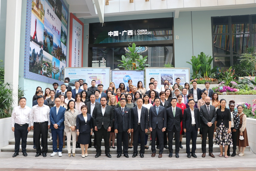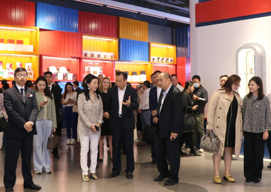 2022年10月16日至22日,中國共產(chǎn)黨第二十次全國代表大會勝利召開。為宣講大會的劃時代意義、重大成果和深遠影響,同時增進各國駐南寧總領(lǐng)事館官員、外籍專家、留學(xué)生、港澳人士代表對東盟國家投資企業(yè)及在桂重點項目高質(zhì)量發(fā)展情況的了解,廣西壯族自治區(qū)外事辦公室(以下簡稱“自治區(qū)外事辦”)和廣西南寧市外事辦公室(以下簡稱“南寧市外事辦”)于11月18日共同組織自治區(qū)外事辦、南寧市委、南寧市外事辦、東盟國家駐南寧總領(lǐng)事館、港澳及僑胞代表等一行約90人到中國—東盟特色商品匯聚中心(以下簡稱“匯聚中心”)考察。廣西新中產(chǎn)業(yè)投資有限公司/中國—東盟特色商品匯聚中心董事長趙海燕會見了考察團一行。廣西新中產(chǎn)業(yè)投資有限公司/中國—東盟特色商品匯聚中心總經(jīng)理施國維陪同考察。